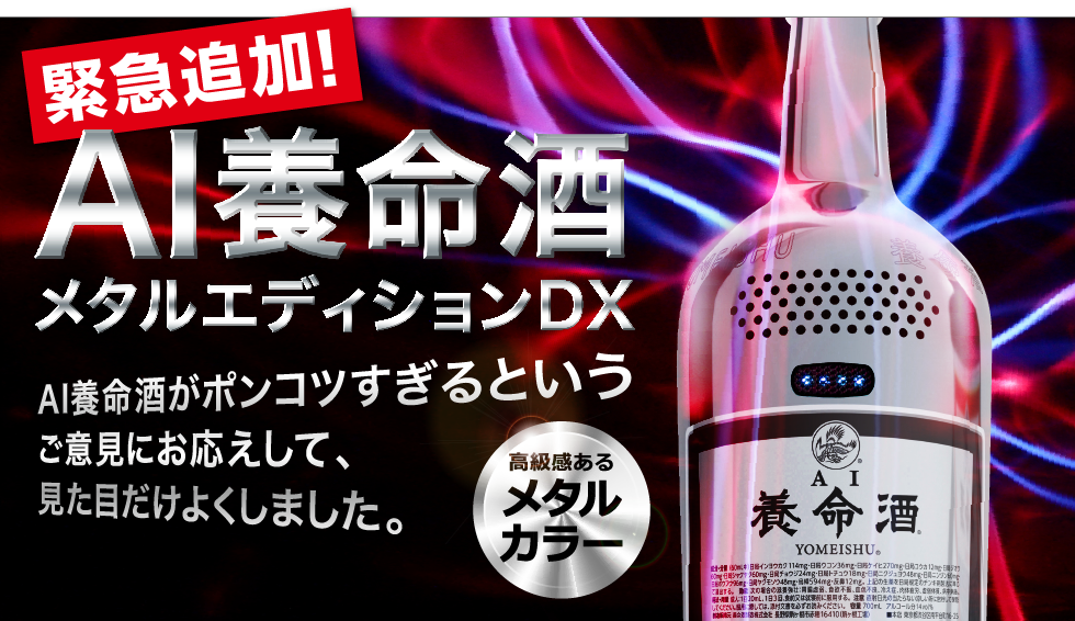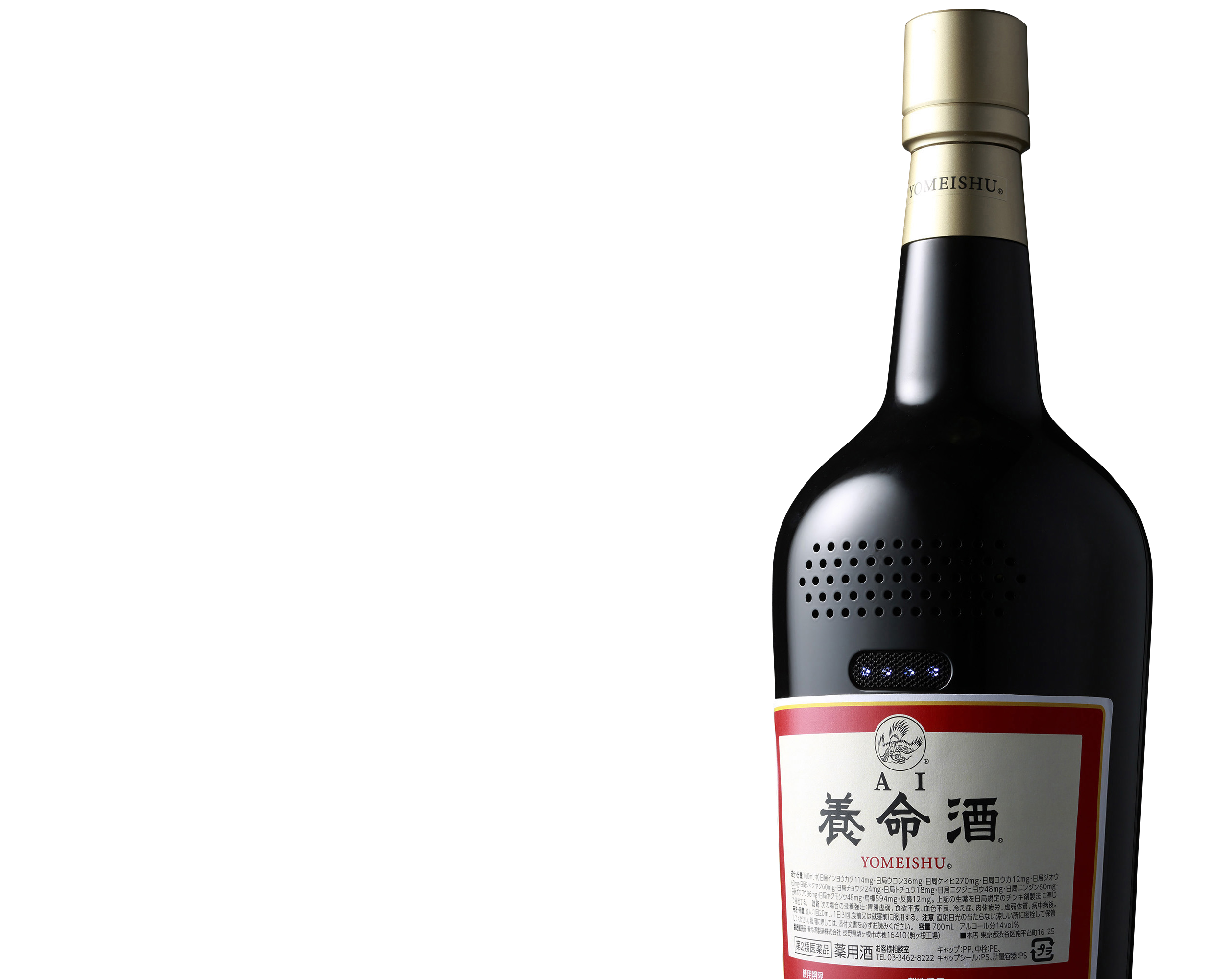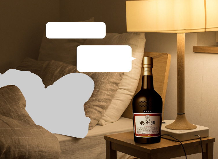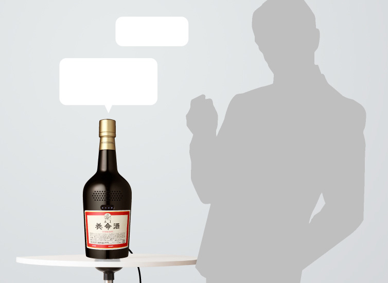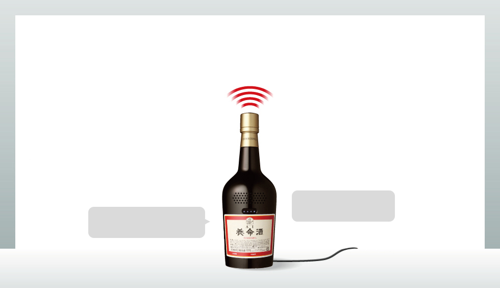 養命酒型スマートスピーカーです。話しかけるとAI養命酒ならではの応答をしてくれます。見た目が実際のビンのため、まるで養命酒と会話している気持ちに浸ることができます。