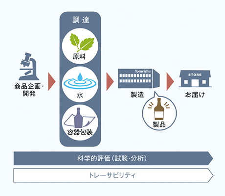 「薬用養命酒」は、原料から製品に至るまで、工程毎の厳重な品質管理のもと、医薬品等の製造管理および品質に関する基準であるGMP(Good Manufacturing Practice)に基づいて製造を行っています。