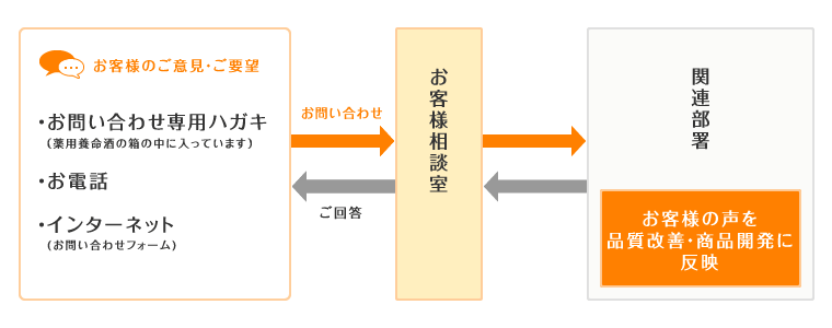 お客様満足の向上を第一に、お客様一人ひとりとの双方向のコミュニケーションを大切にしています。平成7年にお客様相談室を設立、お客様の声一つひとつに真摯に丁寧にお応えするとともに、お寄せいただいた声を新商品の開発や商品やサービスの改善などに反映できるよう体制や取り組みを強化しています。