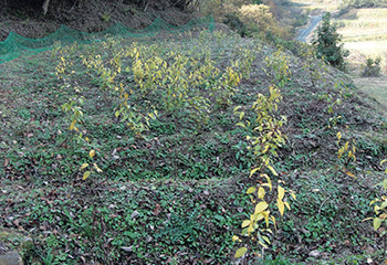 原料生薬の安定的な確保を目的に、山口市とクロモジの試験栽培を行っています。クロモジは、「薬用養命酒」に使われる烏樟の原植物で、製品の安定的な供給には欠かせない原料です。現在、日本では漢方製剤・生薬製剤の原料となる生薬の約8割を輸入に依存しています。需要の拡大に伴い、生薬の国内での安定的確保が求められています。耕作放棄地の活用、中山間地域の活性化につながる作物としても、生薬の国内生産への関心が高まっています。