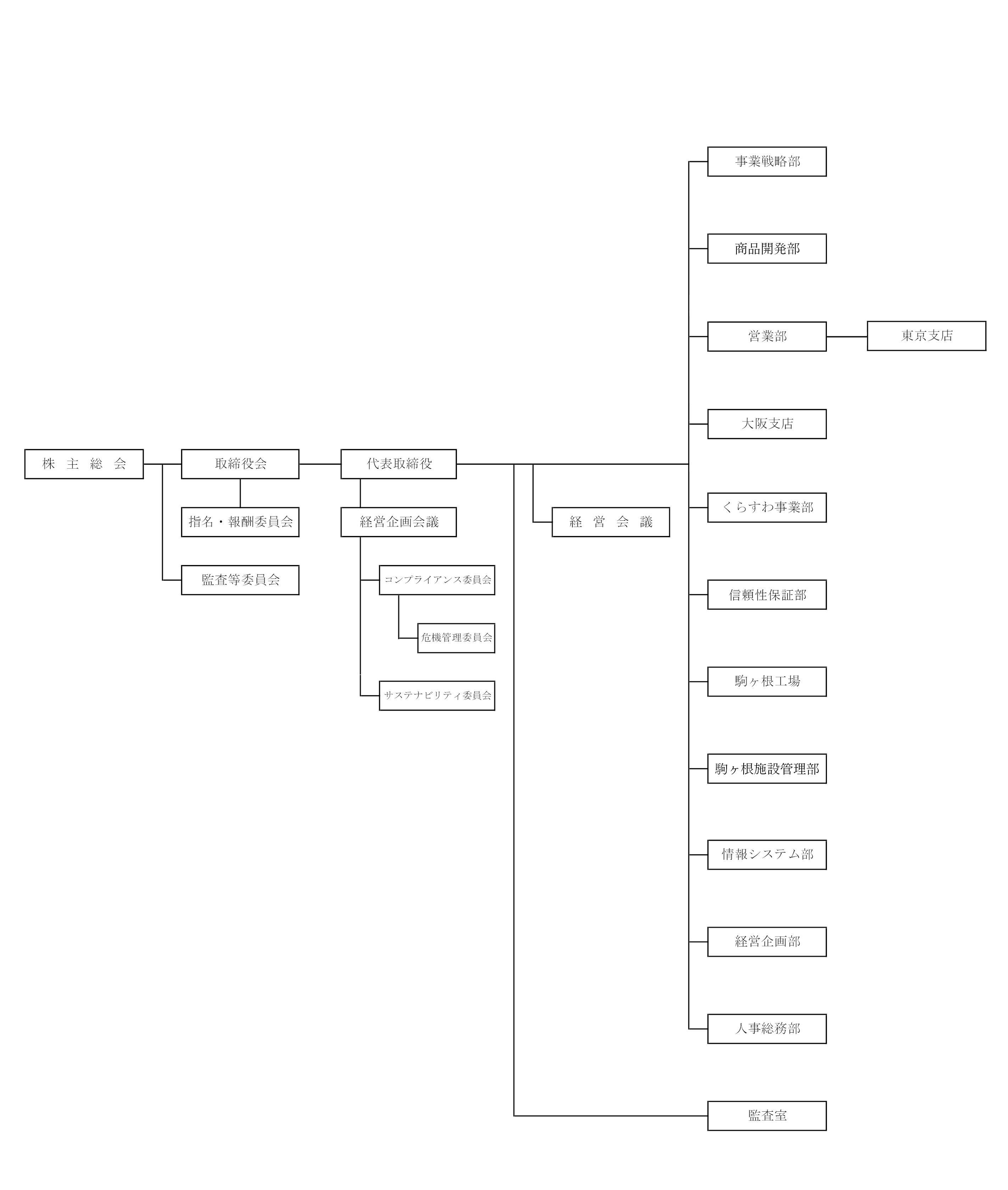 養命酒製造株式会社 経営組織図