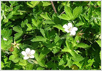 【2007年4月号】今回はセンブリ、ドクダミとともに代表的な民間薬の一つであるゲンノショウコ(Geranium thunbergii,フウロソウ科)を紹介します。その名は「現の証拠」に由来するとも言われ、飲むとすぐ効く・よく効くといったことを意味しています。日本全土の山や野原に自生している多年草で、古くから民間薬として使われてきました。夏から秋にかけて枝先および葉の脇より長い花軸を出して2〜3個の花をつけます。色は白から赤色と一様ではありませんが、北日本では白色花が多いようです。特に花の色と薬効との関係については明らかになっていません。我々の研究所内でも白花とピンク花を見ることができます。 ...
