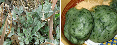 昨年摘んで冷凍しておいたヨモギで作った草もち(右)
