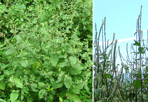 夏から秋にかけて里山を歩くと、このイノコヅチの細かい果実(タネ)が衣服にくっついてなかなかやっかいです。ちなみに、牛膝の名前の由来は、イノコヅチの茎の葉の出る部分が牛の膝のように丸くふくれた節になっていることからとされています。私の好きな生薬の一つです。