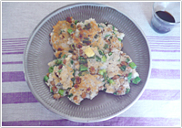 よもぎと豆腐のパンケーキ イチゴソースがけ【2021年4月号】  |