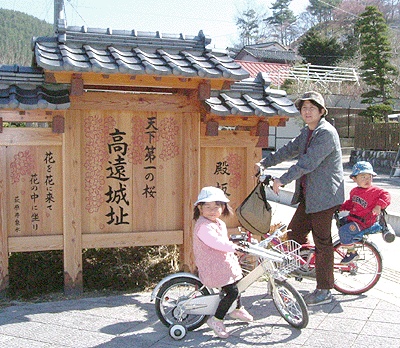 高遠城址公園のタカトオコヒガンザクラの花はやや小ぶりで赤みを帯び、その可憐さと1500本以上の樹林は「天下第一の桜」と称されています。仕事帰りに沿道に掲げられた赤ちょうちんに誘われて夜桜を見に行くことも数回、夜はかなり冷え込みますが、花言葉にある「精神美、心の平安」を求めて子供たちにも付き合ってもらっています。例年の見頃は4月中旬から下旬、夜のライトアップも幻想的です。