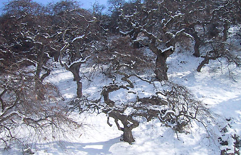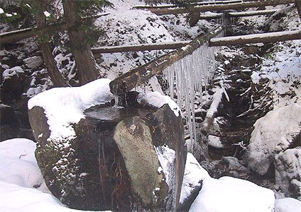 小野から自生地まで登る途中には色白水があり、飲めば色白美人になれるとか。機会があったらお試しください。今年は一足早くしだれ栗の雪景色を見ることができ、これからいよいよ冬本番です。