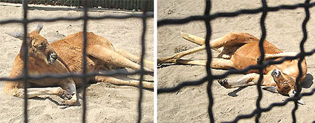 須坂市動物園と言えばご存じアカカンガルーのハッチです。「あっ、ハッチだ!」と子供達は大喜び。そのハッチはお約束のくつろぎスタイルで出迎えてくれました。それにしても何とも言えない独特の癒し系のお顔。見ているだけで心が和みますよね。
