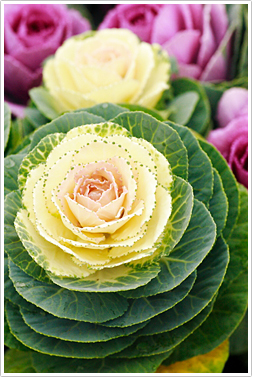 植物が人間にもらたすものは、「実や葉を食べる」「木材にする」といった実益だけではありません。ギリシア・ローマ時代から連綿と「鑑賞する」という文化も続いています。日本においてもまたしかり。華道や盆栽など、独自の芸術的な文化を生み出したことはご存じの通りです。しかし、芸術の領域だけでなく、自宅で植物を愛でる園芸が大いにブームになった時期があります。それは江戸時代です。世界的にみてもグレードの高い園芸文化だったといわれているほどです。 江戸中期以降の園芸では“珍しいモノ”が流行ったそうで、特に「斑入り(ふいり)」の葉っぱが人気だったそうです。斑入りとは、緑の色の葉っぱの葉緑素が一部抜け落ちて、白や黄色、赤などの模様が現れている状態を指します。模様の入り方も、刷毛でこすったような模様だったり、縞模様だったり、ぼかし風だったりと様々。斑入りが生じやすい「万年青(おもと)」や「錦蘭(にしきらん)」といった植物が人気でした。万年青は、引越した新居に、まっさきに荷物として入れると縁起がよいと言われており、「引越しおもと」という言葉もあります。 また、シダの一種である「松葉蘭(まつばらん)」という植物は、葉も花もありません。さらに地中には地下茎と仮根があるのみで、いわゆる本来の「根」がありません。そんな珍妙な植物も、江戸時代に流行ったそうです。 ちなみに、皆さん目にしたことがあると思いますが、上の写真の植物。これはハボタンといいます。冬に鮮やかな色をみせるため、花が咲いていない冬の花壇などでは目立ちますよね。この植物も江戸の頃、キャベツもしくはケールを改良したものとして登場したんだとか。 花のみならず、葉も鑑賞しようとした江戸の人びと。私達の大先輩は、なかなか粋ですよね。 |