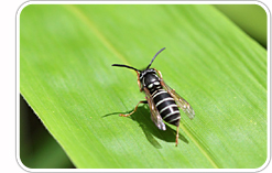 長野の初秋の風物詩としても知られる「地蜂追い」は、一言で言うなら人間とクロスズメバチ(=写真)の追いかけっこです。その舞台は山の中。まず、魚やイカの切り身を餌として仕掛けておきます。やがて飛んできた蜂に、小さな餌に白い真綿を絡めてそっと差し出すと、蜂は器用にそれを抱えて巣に戻ろうとします。あとは、白い真綿を目印にした追いかけっこのはじまりはじまり!