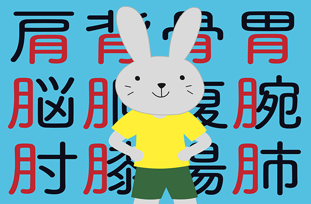 肩、背、骨、胃、脳、胸、腰、胴、腹、腕、腋、肘、腿、膝、股、臓、腑、腸、肺、肝、脾、腎、膀胱、筋、肌…人体を表す漢字の部首の多くに「月」がついていますが、空の月と何か関係があるのでしょうか?漢字の「月」は、半月や三日月に似た形をしていますが、これはもともと月の欠けた形をかたどって作られた文字だからです。
