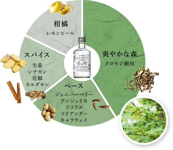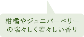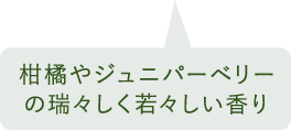 爽やかなクロモジと、ジュニパーベリーや柑橘の瑞々しい香りに、スパイスの余韻が漂います。