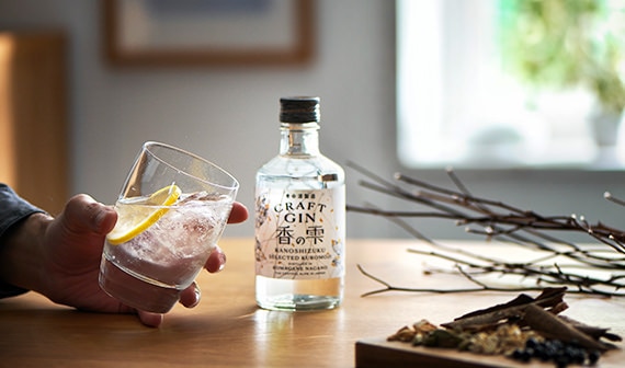 新緑の森をイメージしたクラフトジン「香の雫」。