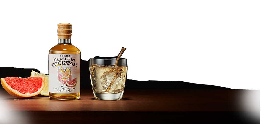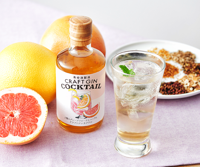 クラフトジンカクテルは「香の雫」をベースに、さらにハーブを漬け込み果汁を加えることで、BARのオリジナルカクテルのような、複雑で余韻のある味わいに仕上げたお酒。