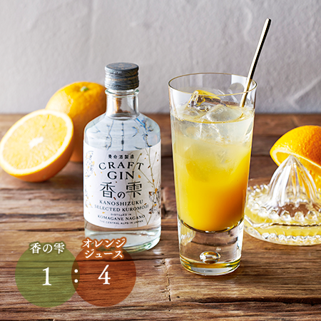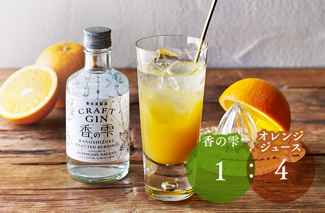 レモンピールも調合しているので、柑橘系との相性はぴったり。ジュースで割っても香の雫の香味はしっかりと感じることができます。