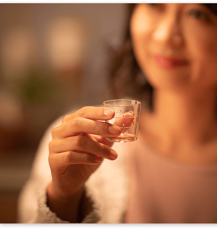 薬用養命酒は、毎日こつこつ飲むことで、おだやかな作用で自律神経に働きかけ、体の持つ本来の状態に近づけていくため、ほてりや発汗などの不調を調整しながら、体を内側から温めてくれます。