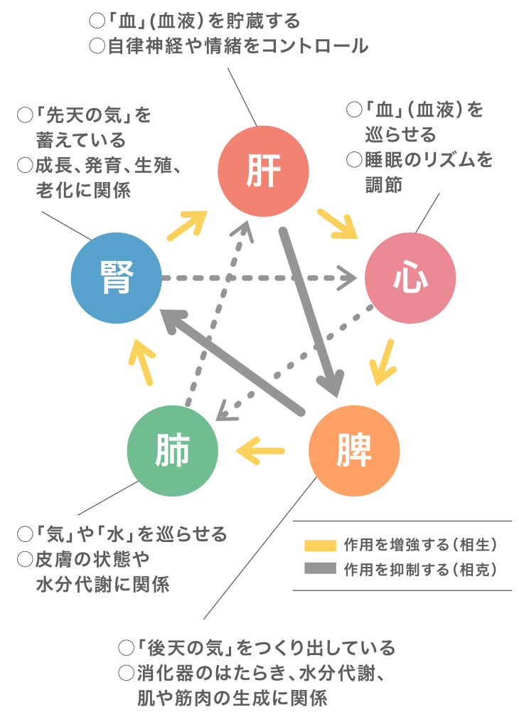 五臓はそれぞれがバラバラに機能しているのではなく、相互に関係を持ちながら働いている。