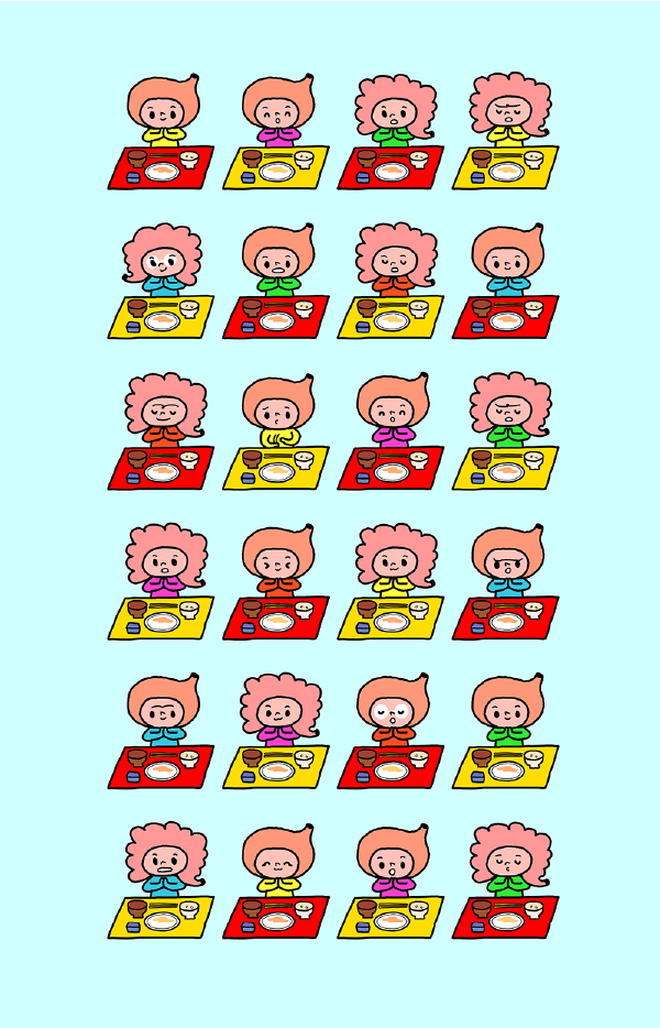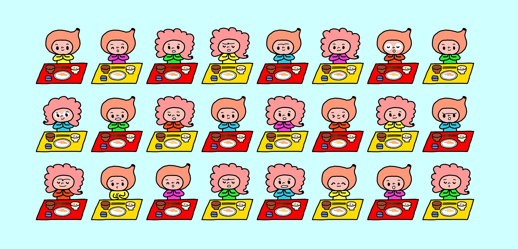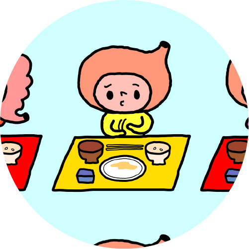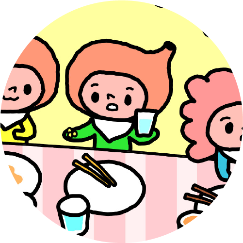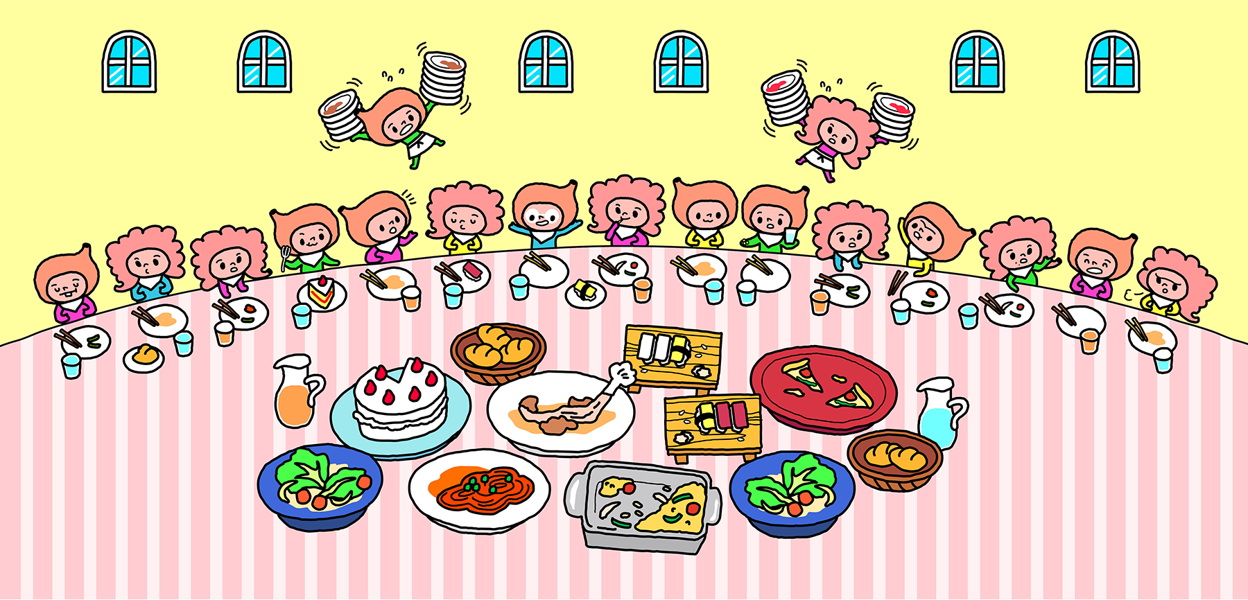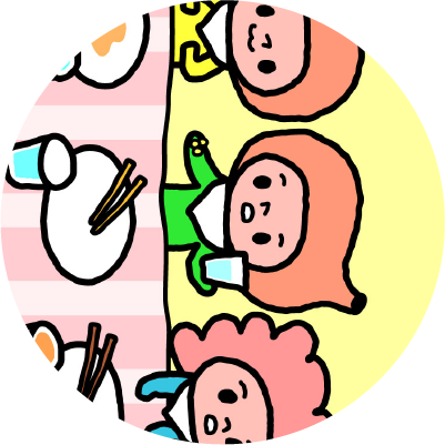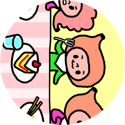 栄養バランスのよい食事を心がけていても、食後の消化を妨げる行いをしている子がいるよ!さあ、どの子だ?