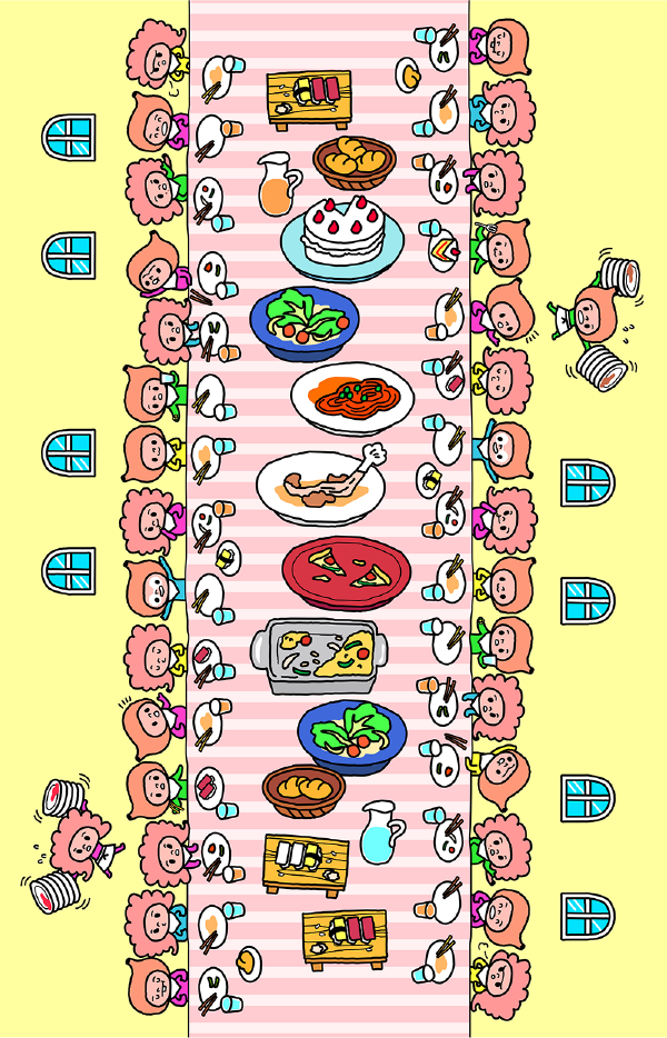 たくさんのごちそうをつい食べ過ぎちゃった!