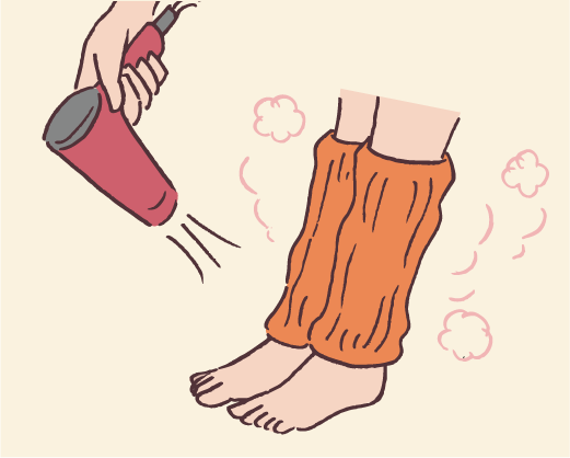 自律神経が乱れると、寝つけないなどの睡眠障害につながりやすくなります。良質な睡眠を妨げる一番の原因は「冷え」。特に筋肉が少なく温まりにくい足首は、レッグウォーマーなどで保温を。冷えが強いときはレッグウォーマーの上からドライヤーで1分ほど、しっかり温めて。