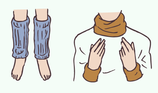 体が冷えると血行不良に陥り、老廃物がたまった部分に痛みが出やすくなります。予防するには、何より体を冷やさないことが先決。太い血管が通っている首・手首・足首の「3つの首」をネックウォーマーやハンド&レッグウォーマーなどでしっかり保温しましょう。