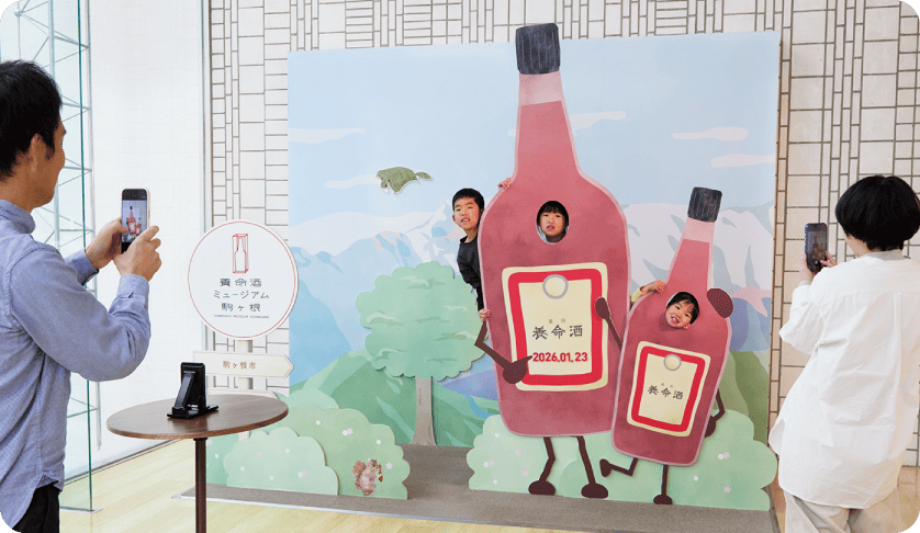 • 養命酒の「ビンくん」になりきれる、顔はめパネルのフォトスポット。来場記念にぜひ!