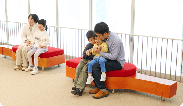 ショップゾーン脇には、養命酒のビン型ソファを設置しています。ミュージアム内を歩き疲れた時に効く、ひと休みポイント。座っているところを写真に撮って、旅の思い出にも。