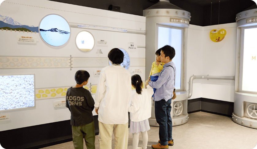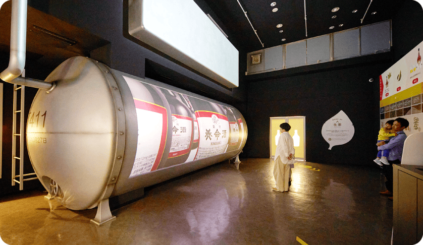 • 実物大のタンクの模型をスクリーンにしたプロジェクションマッピングなどで、養命酒の造り方を解説します。