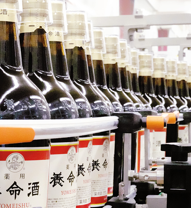 • 国内用だけでなく、海外に輸出される養命酒も、ここ駒ヶ根で造られています。1日に約47,000本のビン詰めが可能です。