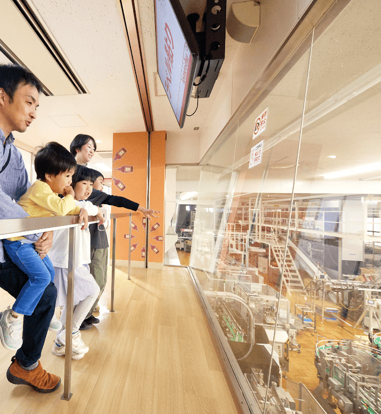 • 実際のビン詰めや、包装ラインを見学できます。大量の養命酒のビンが高速で流れる様子は圧巻です。