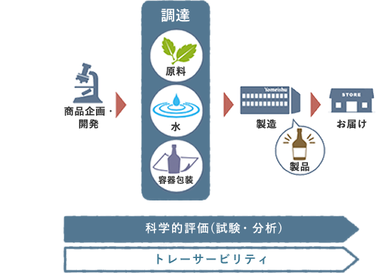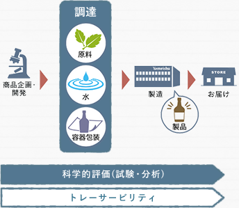 多くの工程毎に、独自の厳しい品質基準による分析試験を繰り返し、品質管理を徹底して行います。