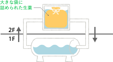 調合された生薬を原酒に浸漬し、循環させて有効成分を抽出します。