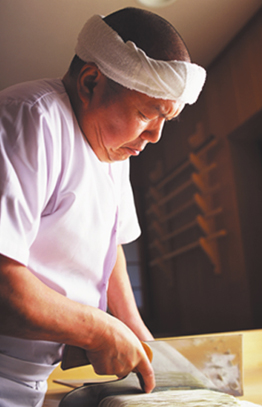 「信州の工場も見学させてもらいましたが、水飴など余計な物を加えず、昔ながらの本みりん本来のつくり方を真面目に守っている。だからこそ、変な嫌みやベタベタするところもなく、深い旨みが生きているんですね。」と高橋氏。そばの繊細な味わいを引き立てるそばつゆ。その「返し」づくりに、家醸本みりんの自然な甘みが活かされます。