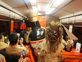 さらに、運行中の列車内に地元伝統の「なもみ」が登場したり、絶景ポイントで列車を停止してくれたりなど、ローカル線ならではのおもてなしが受けられる観光列車です。